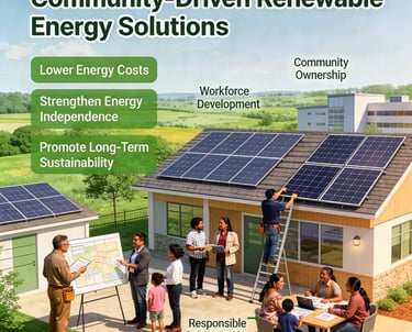 Collaborating with communities to develop local alternative and renewable energy solutions that lower energy costs, strengthen energy independence, and promote long-term sustainability. This approach prioritizes community ownership, workforce development, and responsible resource use, ensuring that energy projects not only deliver reliable, affordable power, but also create lasting economic and environmental benefits for future generations.